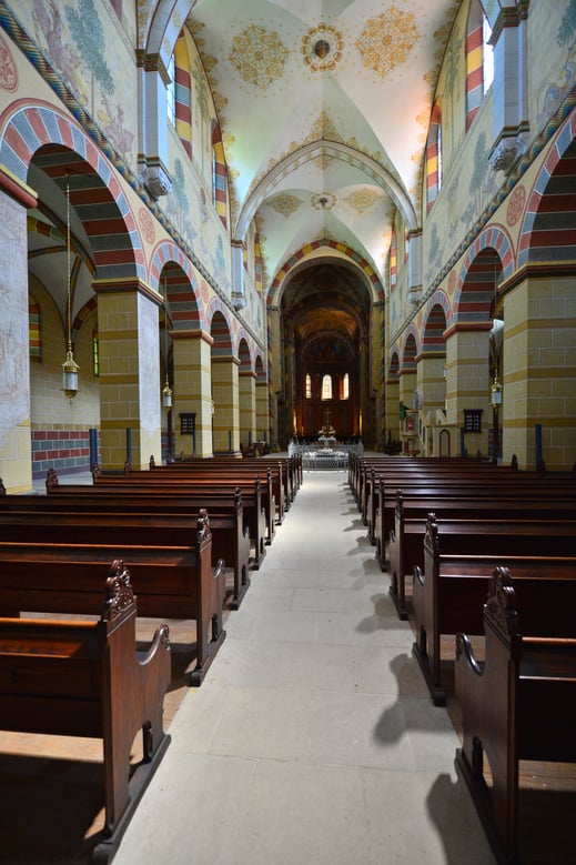 Neben dem großen Dom mit 18 Meter hohen Gewölben liegt der ehemalige Kreuzgang – romanisch gedrungen –, von dem der nördliche und westliche Flügel erhalten sind. Dabei bezaubert der nördliche Teil mit seiner außergewöhnlichen Säulenreihe, durch die eine Zweischiffigkeit entsteht. Jede Säule ist unterschiedlich dekoriert, jedes Kapitell ein Einzelstück. Im Winkel beider Galerien ist gerade ausreichend Raum für eine kleine Bühne, auf der maximal eine kleine Kammermusikbesetzung Platz findet. Egal ob tänzerische Holzbläser oder rasante Akkordeonfluten, ob glasklare Stimmen oder swingende Gitarren, die sich langsam senkende Dämmerung im herbstlichen Kreuzgang verstärkt den Eindruck der Abgeschiedenheit, die in der Architektur des Kreuzgangs durchaus beabsichtigt war.